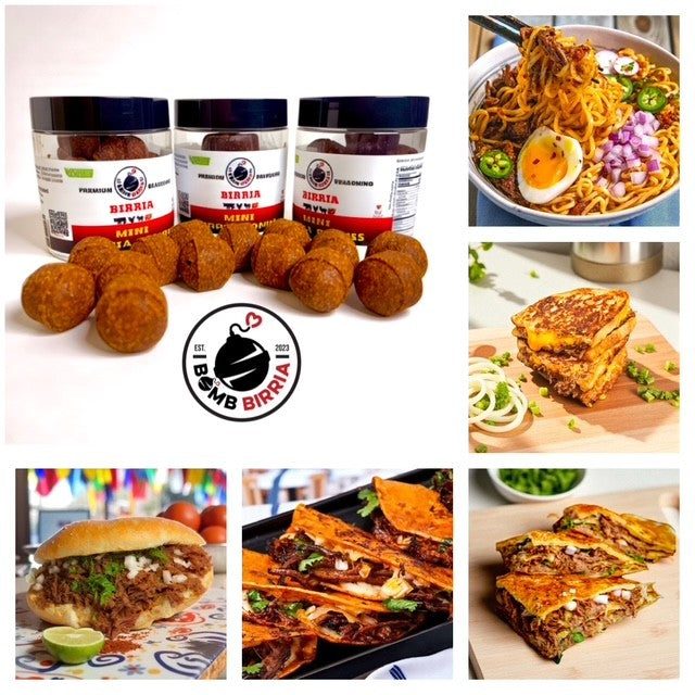 Get ready to elevate your Birria with our delicious seasoning. Party of one or two? Our easy to use Mini Birria Bombs you can effortlessly prepare 1 to 3 pounds of tender, flavorful delicious birria that will have everyone coming back for seconds. Our seasoning is not only easy to use but also makes cooking a blast. Dive into the fun of cooking and let your taste buds dance with delight.